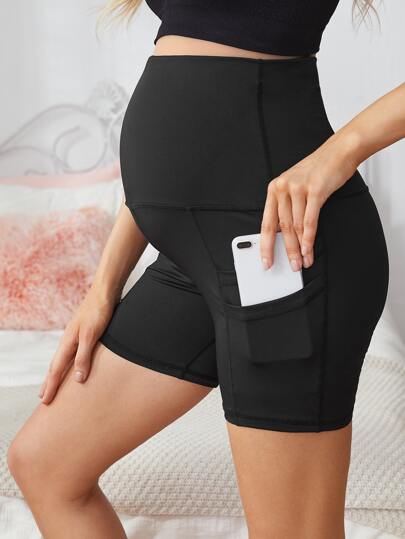 SHEIN Maternity Cycling Shorts With Phone Pocket - Black - View 1