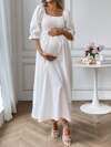SHEIN Short Sleeve Crew Neck Solid Color Fitted Maternity Dress