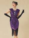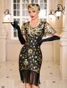 Women 1920s Vintage Sequin Short Sleeve Mesh Tassel Hem Dress Elegant Cocktail Semi Formal Prom Wedding Guest Dress, For Birthday, Graduation, Dinner, Homecoming Party Dress