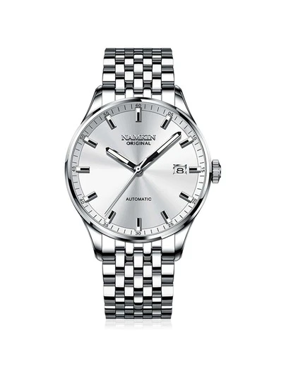NAMKIN 1pc Men Silver Stainless Steel Strap Business Date Round Dial Mechanical Watch, For Daily Life - White - View 1