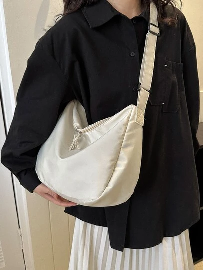 Medium Hobo Bag Beige Minimalist Adjustable Strap For Daily - Beige - View 1