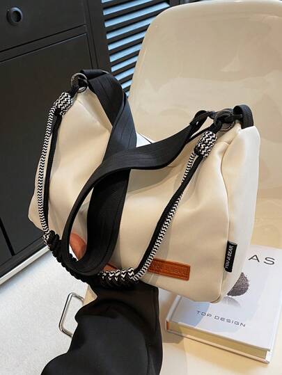 Medium Hobo Bag Letter Patch Decor - White - View 1