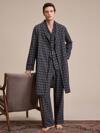 EverLounge Casual Basic Color Houndstooth Geometric Retro Gentleman Men's Bathrobe