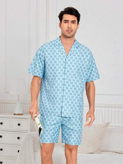 Men'S Geometric Printed Short Sleeve Shorts Homewear Set - Multicolor - View 1