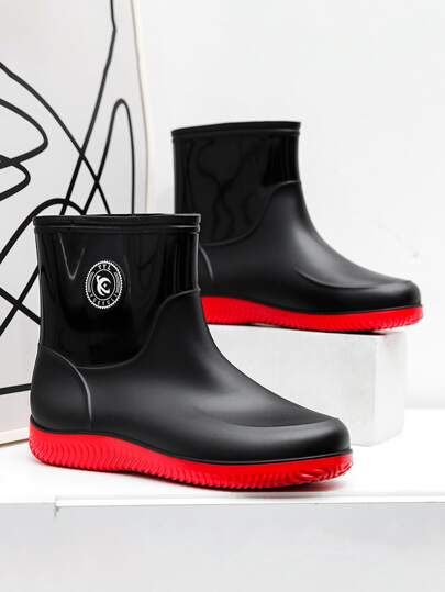 Men's Black Fashionable Outdoor Rain Boots - Black - View 1