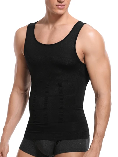 Men's Black Tummy Control Waist Trainer Vest Shapewear, Sports - Black - View 1