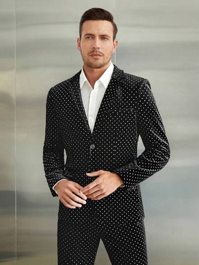 Manfinity VCAY Men's Black Velvet Blazer With Polka Dots - Multicolor - View 1