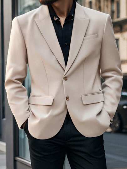 Manfinity VCAY Men's Casual Daily Young Loose Solid Color Woven Long Sleeve Jacket, For Fall Winter - Apricot - View 1