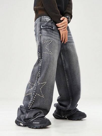ROMWE MEN Street Life Men's Diamond Decor Ripped Pocket Casual Versatile Denim Jeans - Black - View 1