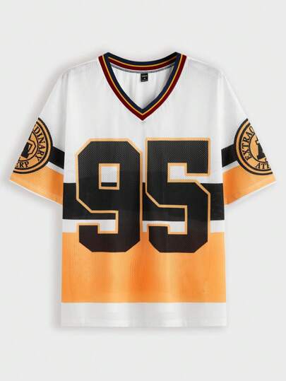 Manfinity VCAY Men's Digital Graphic Loose Fit Short Sleeve Knit T-Shirt, Suitable For Summer - Multicolor - View 1