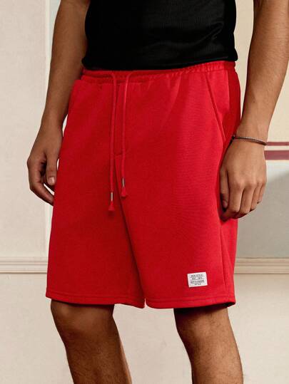 SWAVVY Men's Drawstring Waist Knitted Casual Shorts - Red - View 1