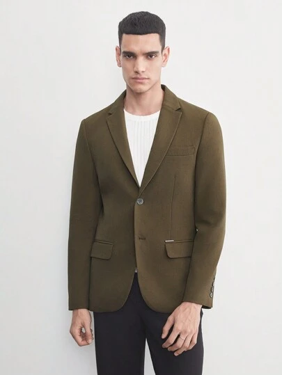 AKNOTIC Business Casual Men's Linen Old Money Style Woven Blazer For Summer, For Fall Winter - Army Green - View 1