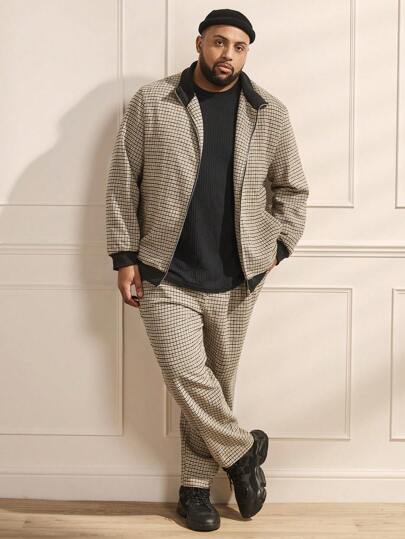 Manfinity VCAY Men's Plus Size Plaid Woven Casual Two Piece Set - Khaki - View 1