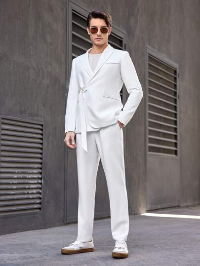 GENTILAND Men's Solid Color Casual Suit - White - View 1
