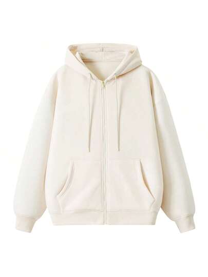 Men's Solid Color Hooded Zipper Sweatshirt Jacket - Beige - View 1
