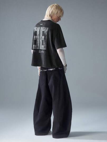NEON BLANC Men's Street Style Graphic Numeric Print Crew Neck Short Sleeve T-Shirt, Streetwear Class - Black - View 1