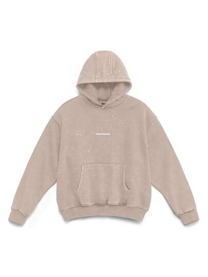 NEON BLANC Men's Street Style Knitted Salt Distressed Rhinestones Long Sleeve Hoodie, For Fall Winter - Camel - View 1