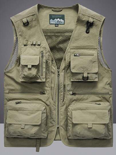 4-Season Lightweight Casual Stand Collar Vest For Men, Multi-Pocket Outdoor Fishing/Hiking/Trekking, Suitable For Fishing, Hiking, Outdoor Activities - Khaki - View 1