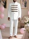 Disqoir Men's White Dashiki Suit Set, Casual Minimalist Design With Special Collar, 3D Cut, Long Sleeve, Elastic Waist Pants, African Style Outfit, Men's Casual Shirt And Pants 2 Pieces Set, New Style For All Seasons, Street Style, Party, Date, Wedding, Cultural Events 2pcs/Set 2025 New Men's Dashiki Set, Solid Color Long Sleeve Shirt With Collar, Pocket, Buttons, Elastic Waist Pants, African Clothing, Men Casual Shirt And Pants 2 Piece Outfit, Streetwear, Party, Wedding, Daily Wear, Cultural Events, Traditional Ceremonies