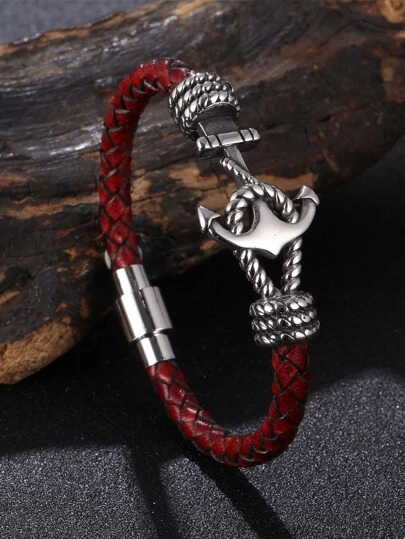 Men Anchor Decor Bracelet - Burgundy - View 1