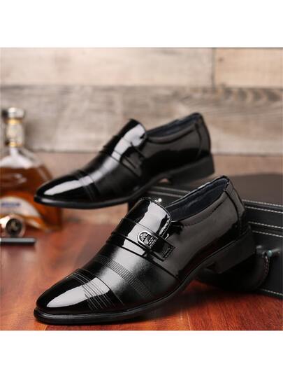 Men Black Formal Shoes With Metallic Decoration - Black - View 1