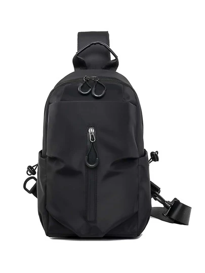 Men Minimalist Zip Detail Sling Bag - Black - View 1