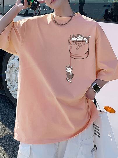 Manfinity Hypemode Men Cartoon Graphic Drop Shoulder Oversized Tee - Pink - View 6