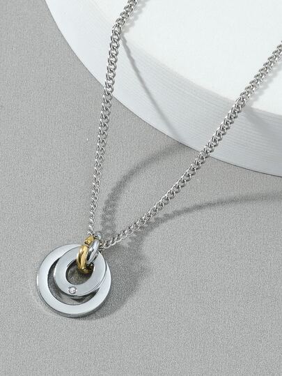 Men Circle Pendant Necklace - Silver - View 1