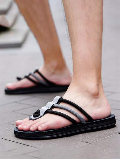 Men Color Block Flip Flops, Casual Outdoor Fabric Slippers - Grey - View 1