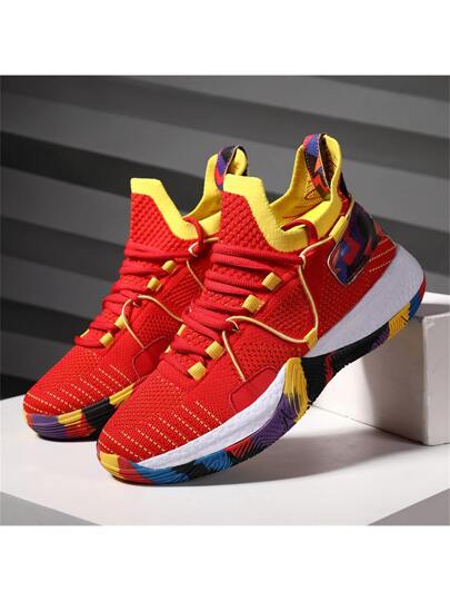 Men Colorblock Lace Up Front Sneakers, Sport Outdoor Sneakers - Red - View 1