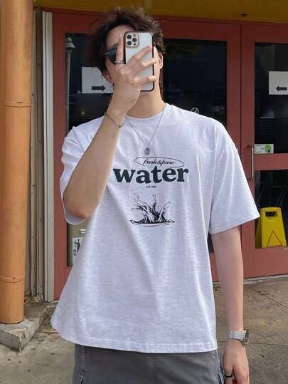 DAZY Men Cotton Letter Graphic Drop Shoulder Tee - Light Grey - View 1