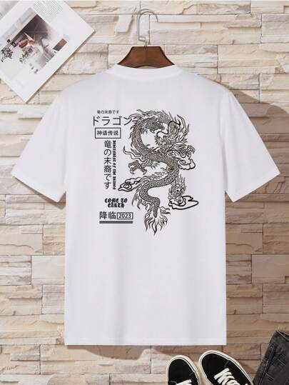 Men Dragon & Japanese Slogan Graphic Tee - White - View 1