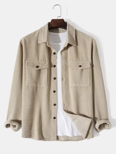 Manfinity Men Flap Pocket Button Through Corduroy Coat Without Tee - Apricot - View 1