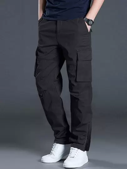 Manfinity LEGND Men Flap Pocket Zip Hem Drawstring Waist Trousers - Black - View 4