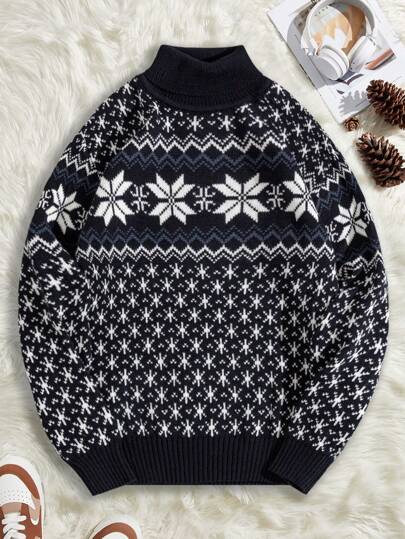 RueChic Men Geo Pattern Turtleneck Sweater - Multicolor - View 1