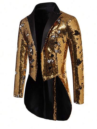 Men Glitter Tailcoat Suit Tuxedo Jacket For Stage Performance Formal Costume - Gold - View 1