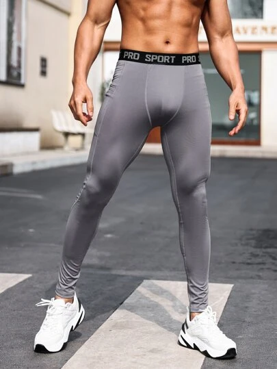 Men Letter Graphic Sport Tights - Dark Grey - View 1