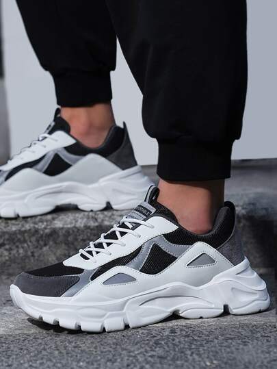 Men Letter Patch Decor Mesh Panel Lace-up Front Chunky Sneakers - Multicolor - View 1