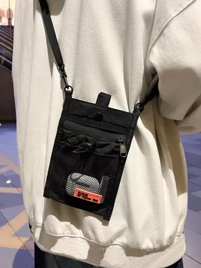 High School Students University Freshman multifunctional sling bag shoulder bag casual bag Mini Men Letter Patch Fishnet Pocket Front Crossbody Bag, Handbag Schoolbag For Travel,College,Commute - Black - View 7