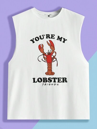 FRIENDS X SHEIN Men Lobster And Slogan Graphic Tank Top - White - View 1