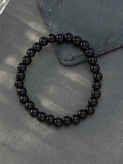 Men Minimalist Beaded Bracelet - Black - View 1
