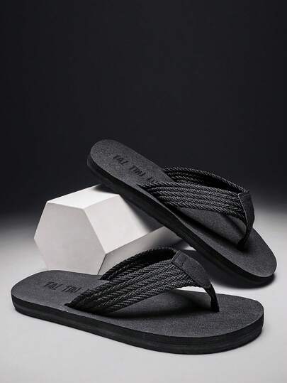 Men Minimalist Toe Post Flip Flops, Outdoor Fabric Flip Flops - Black - View 1