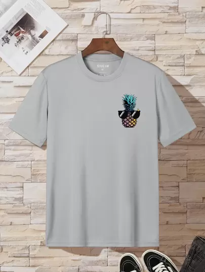 Men Pineapple Print Tee - Grey - View 1
