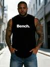 AnChiStreetwear - Plus Size Men's Fashionable Simple English Graphic Print Casual Crew Neck Tank Top, Sleeveless Top, Perfect For Street Style, Outdoors, Indoors, And Everyday Commute.