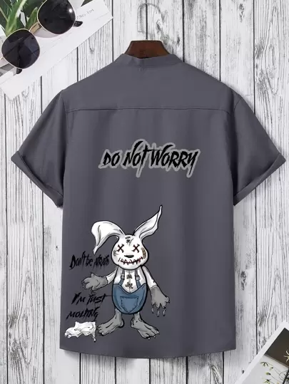 Manfinity Men Rabbit & Slogan Graphic Shirt - Dark Grey - View 1