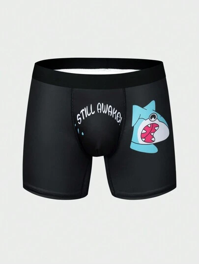 Men'S Cartoon & Letter Pattern Boxer Briefs - Baby Blue - View 1