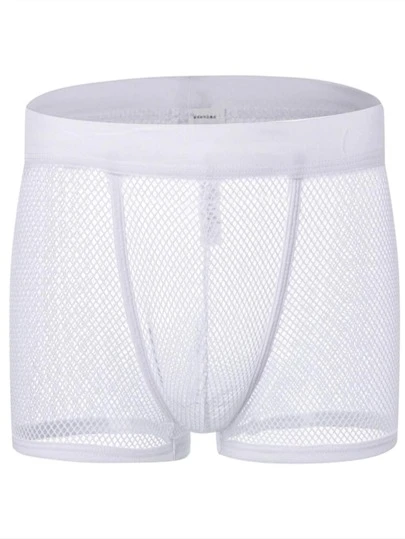 Transparent Mesh Boxer Briefs For Men, Sexy Underwear - White - View 1