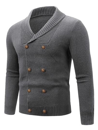 Manfinity Men Shawl Collar Double Breasted Cardigan - Dark Grey - View 1