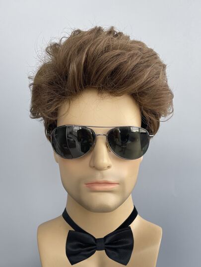 Men Short Curly Brown Synthetic Wig For Daily Wear - Brown - View 1