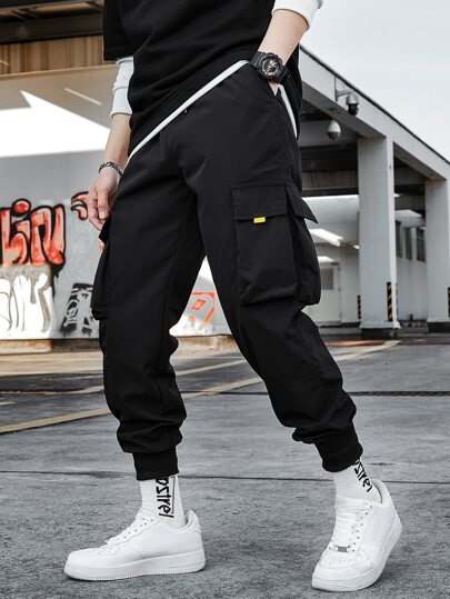 Manfinity Men Slant Pocket Cargo Trousers - Black - View 1